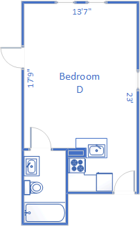 Apartment furnishings & fixtures may vary and subject to change without notice. Floor plan dimensions are approximate.